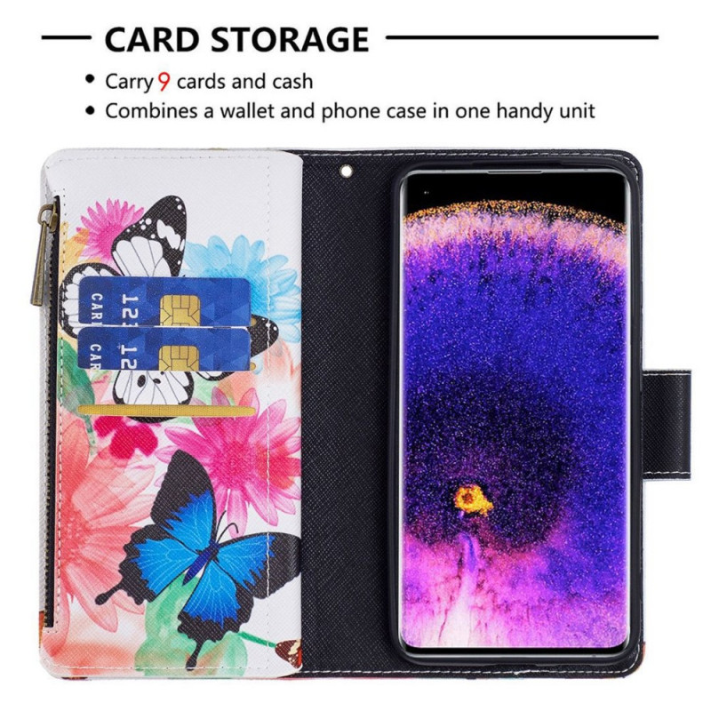 Cette housse avec poche zippée Papillon Royal sécurise l'ensemble du Oppo Find X5 Lite et sert de portefeuille.