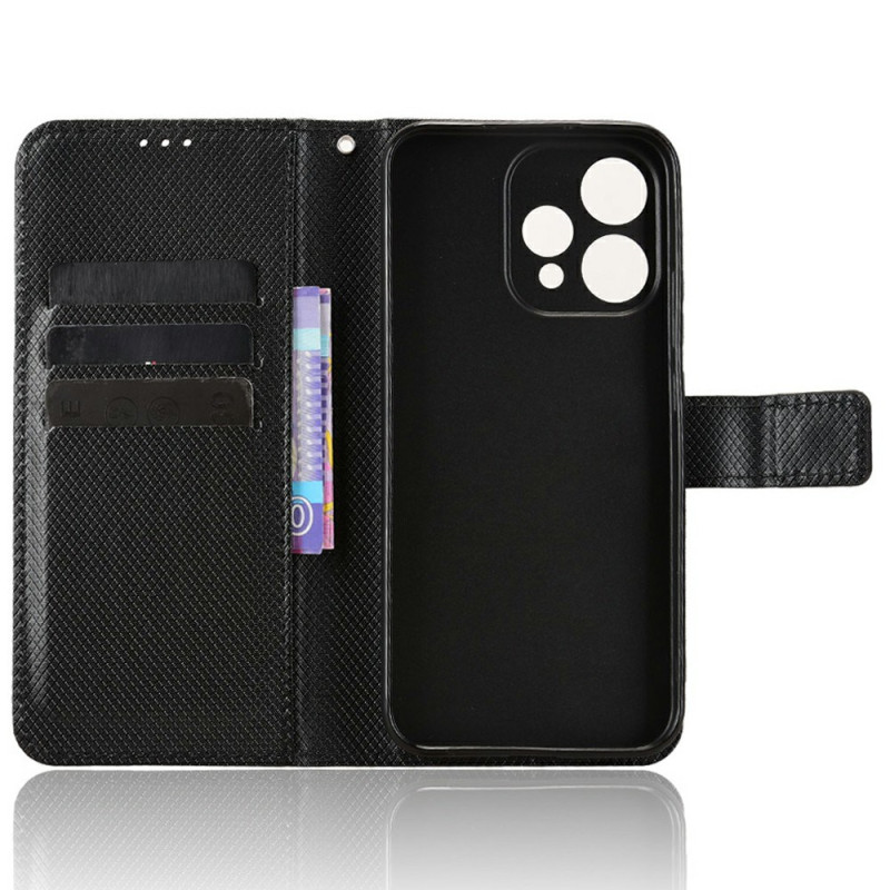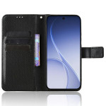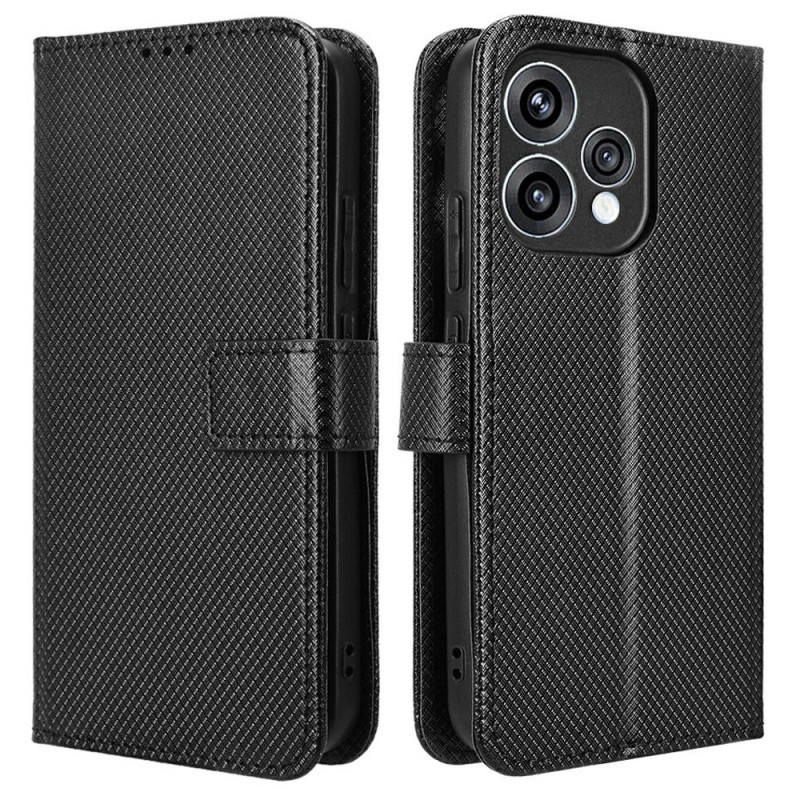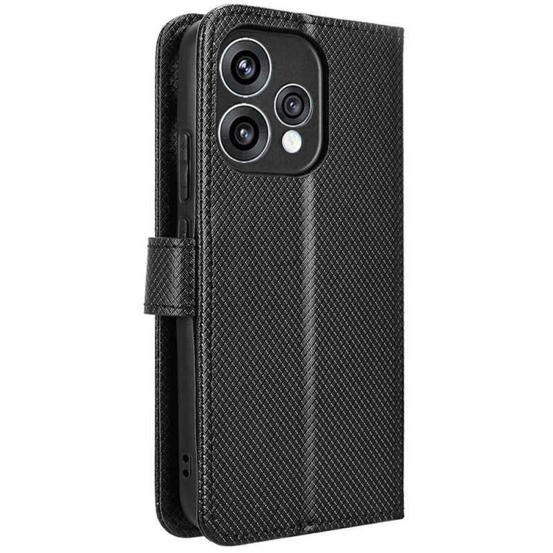Étui portefeuille élégant en simili cuir avec texture diamant pour Oppo Reno 15 5G. Équipé de compartiments pour cartes, fermeture magnétique, support pliable et dragonne. Protection intégrale contre les chocs et rayures pour un usage quotidien pratique.