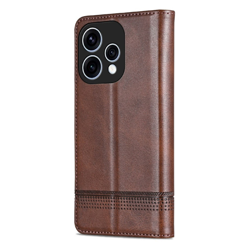 Étui portefeuille élégant en cuir PU avec texture grain cuir pour Oppo Reno 15 5G. Fonction support ajustable, porte-cartes intégrés et poche pour espèces. Fermeture magnétique sécurisée et protection optimale de la caméra.