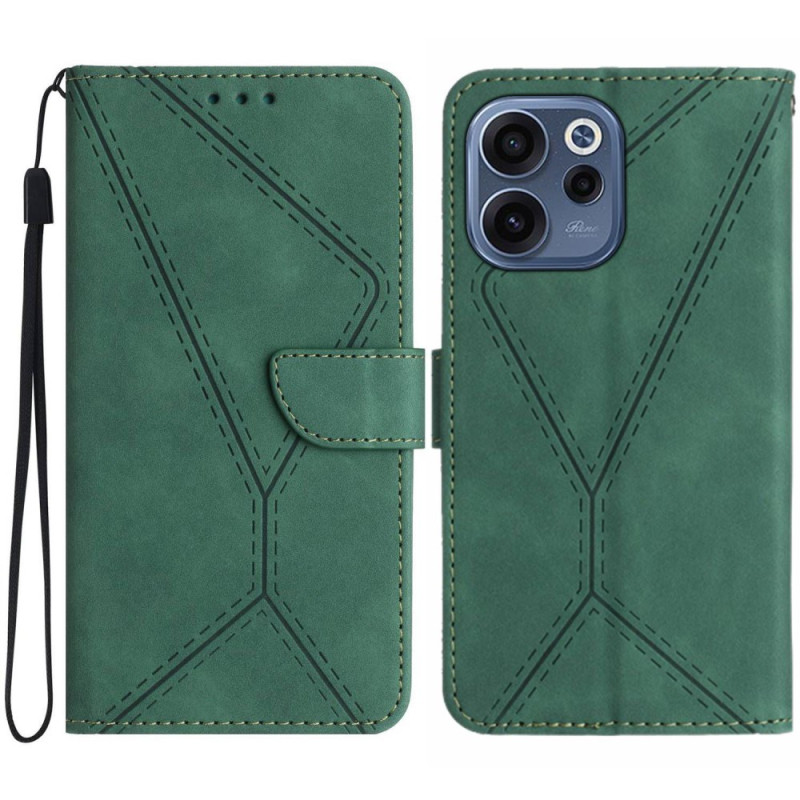 Étui à rabat élégant pour Oppo Reno 15 F 5G avec texture cuir souple au toucher et lignes imprimées. Protection complète avec coussins anti-choc aux coins, support ajustable pour visionnage mains libres, et style portefeuille avec fentes pour cartes et dragonne.