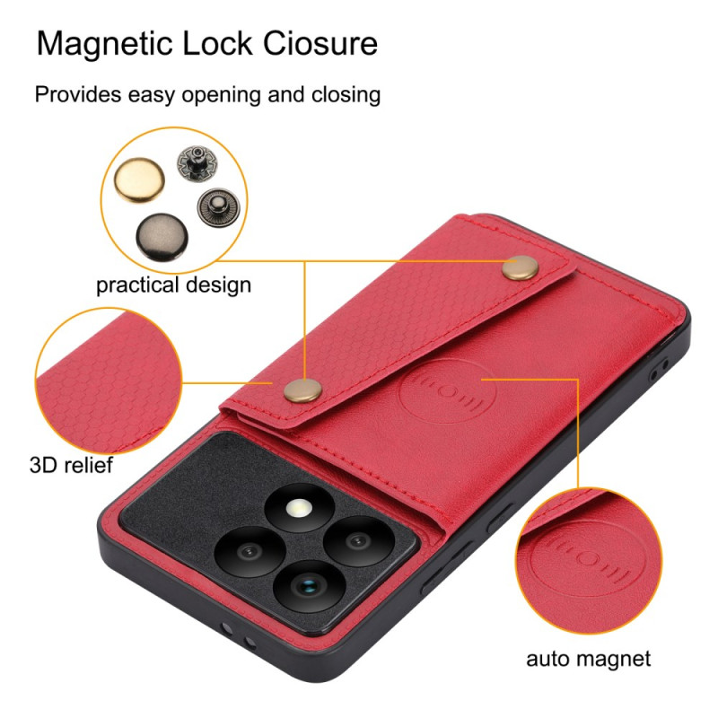 Découvrez notre étui pour Poco F6 Pro 5G doté d'emplacements pour cartes et d'un support de voiture magnétique.
