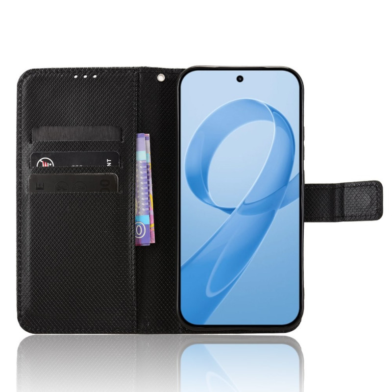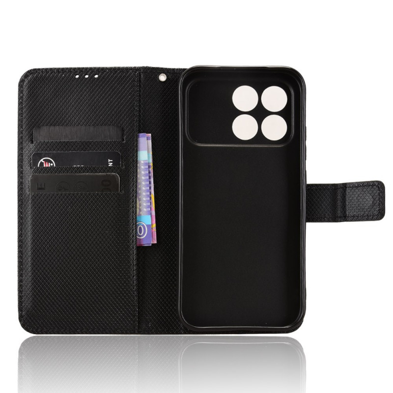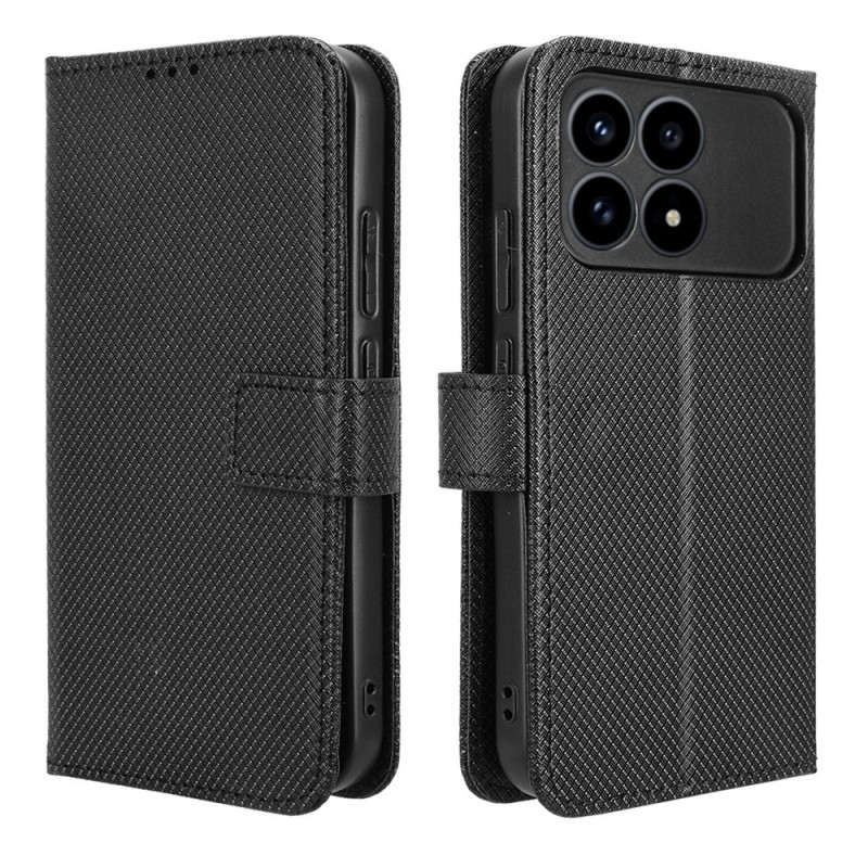 Étui portefeuille élégant avec texture diamant pour votre Xiaomi Poco F8 Pro. Doté de multiples fentes pour cartes, d'une poche pour espèces et d'une dragonne pratique. Protection intégrale et fonction support.