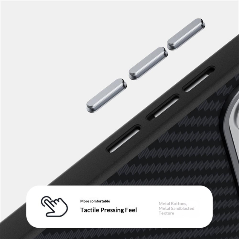 • Combinaison de matériaux premium avec coque en PC, bordure en TPU, alliage d'aluminium, cuir écologique et motif imprimé en fibre de carbone 6D pour un look luxueux et une construction durable