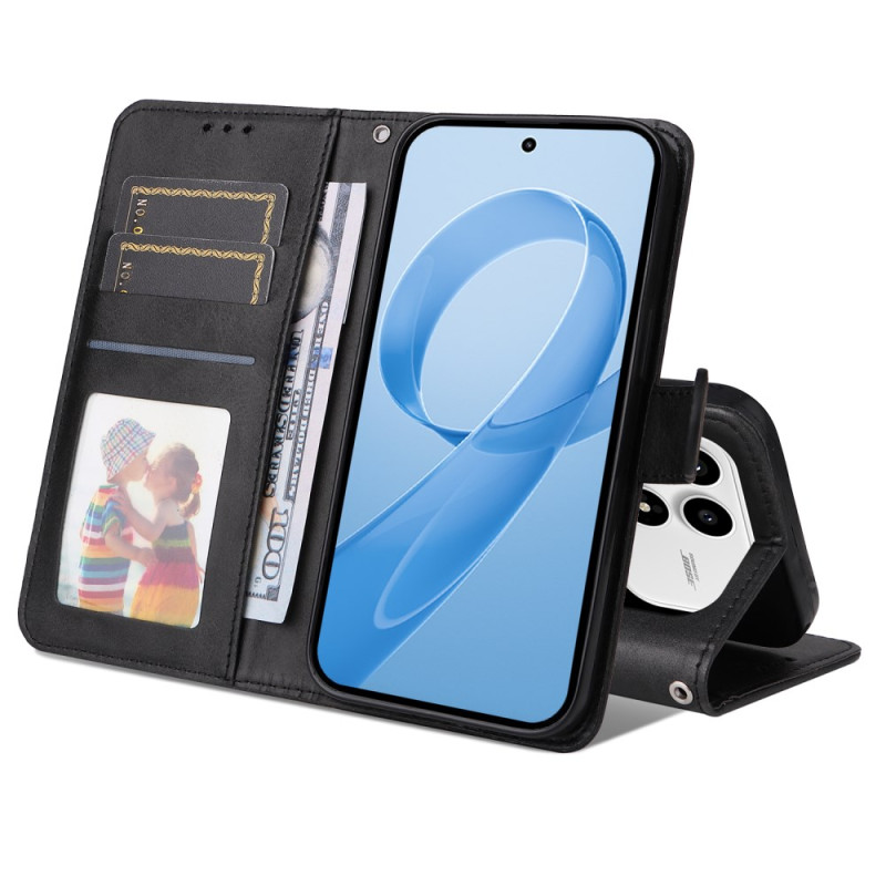 Étui portefeuille élégant en cuir PU texturé avec fentes pour cartes intégrées. Design à rabat avec fermeture magnétique sécurisée et fonction support mains libres. Protection intégrale 360° grâce à sa coque TPU renforcée. Dragonne pratique incluse.