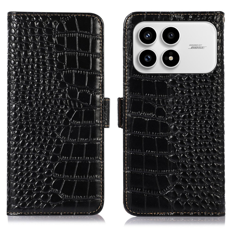 Découvrez notre étui portefeuille élégant en cuir véritable avec texture crocodile pour votre Poco F8 Pro. Doté de la technologie de blocage RFID, de 3 emplacements pour cartes et d'un support intégré, il allie style et fonctionnalité.