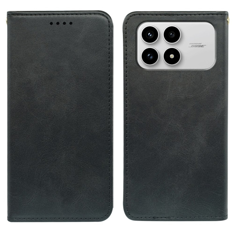 Étui portefeuille magnétique en cuir PU texture veau pour Poco F8 Pro. Protège votre téléphone avec style grâce à sa coque en TPU souple, ses 3 emplacements pour cartes, sa poche à billets et sa fonction support ajustable.