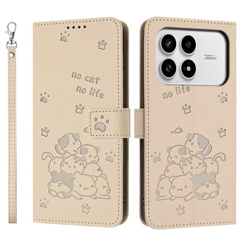 Étui portefeuille élégant avec motif chats gravé pour votre Xiaomi Poco F8 Pro. Combine style et fonctionnalité avec plusieurs emplacements pour cartes, support pliable et dragonne amovible. Protection complète contre les chocs et les rayures.