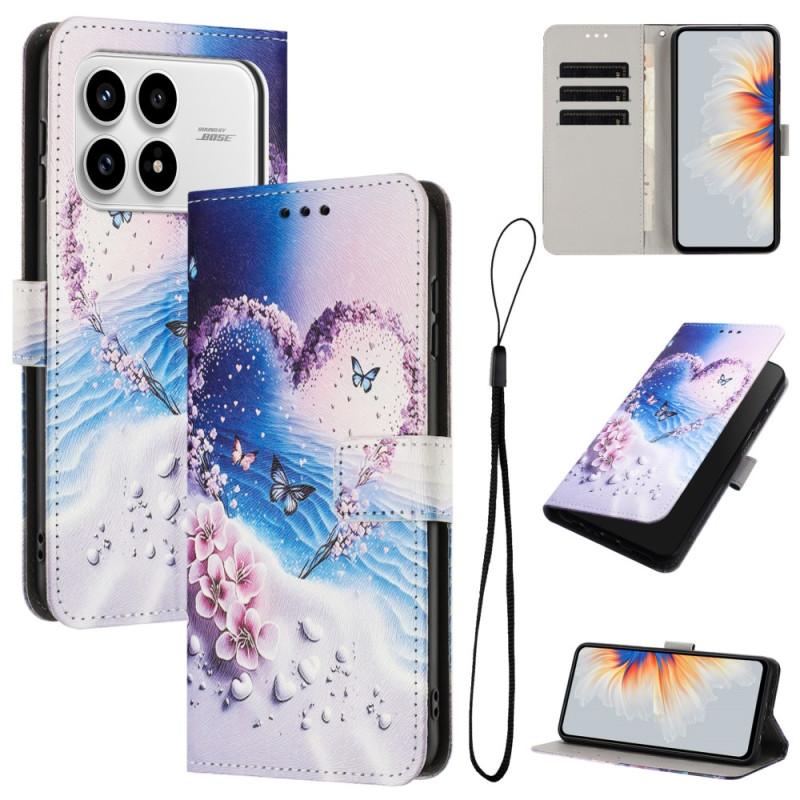 Protégez votre Poco F8 Pro avec élégance grâce à cet étui portefeuille au motif papillon cœur. Conçu en cuir PU premium, il offre des emplacements pour cartes, un support pliable et une dragonne pratique.