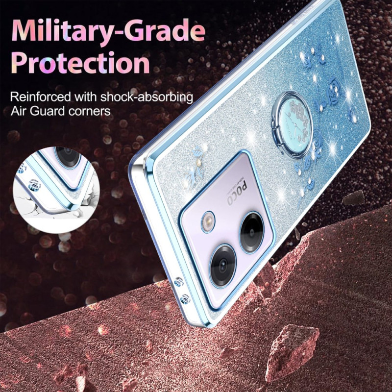 Protégez votre Xiaomi Poco M7 Pro 5G avec style grâce à cette coque élégante ornée de fleurs éternelles et de strass pailletés. Son anneau support rotatif permet un visionnage mains libres confortable et une prise en main sécurisée au quotidien.