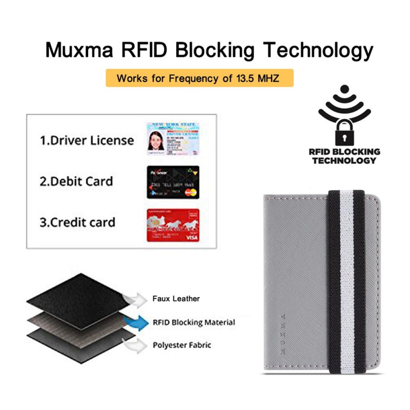 La technologie de blocage RFID protège vos informations sensibles, tandis que la bande élastique assure une prise en main sûre.