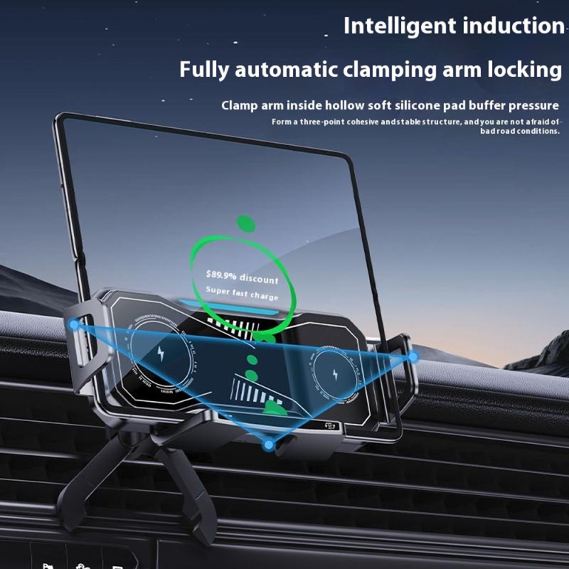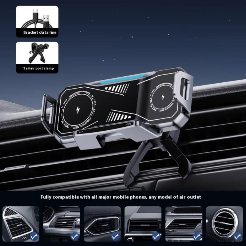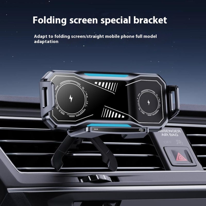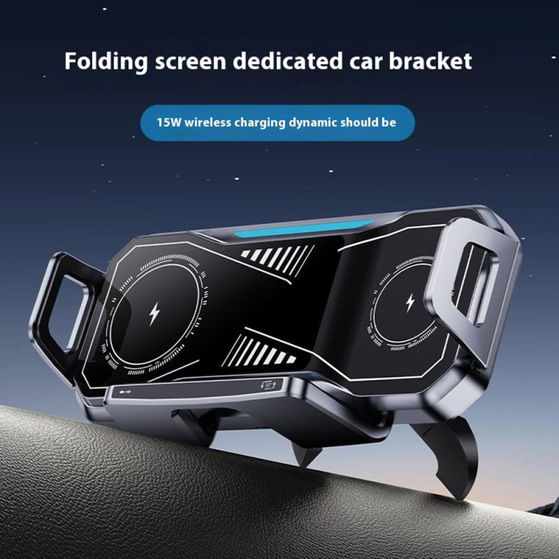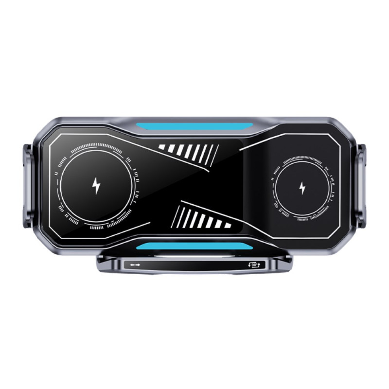 Transformez votre expérience de conduite avec ce support de chargeur sans fil innovant. Doté de deux bobines de charge rapide 15W, il est parfaitement compatible avec les smartphones pliables. Son éclairage d'ambiance intégré crée une atmosphère élégante.
