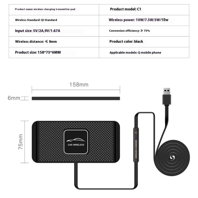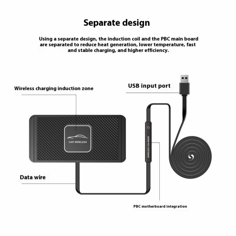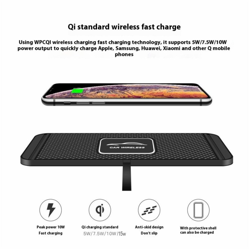 Transformez votre tableau de bord en station de charge intelligente ! Ce chargeur sans fil 15W offre une charge rapide et sécurisée grâce à sa surface antidérapante en silicone et sa détection automatique d'objets métalliques. Compatible avec tous les smartphones Qi, il garantit stabilité et efficacité énergétique optimale.