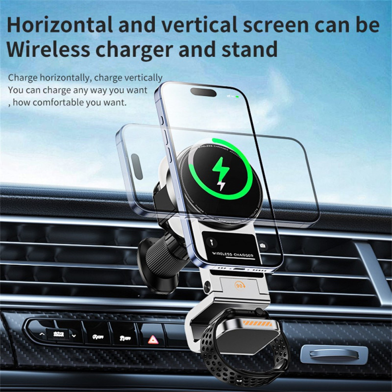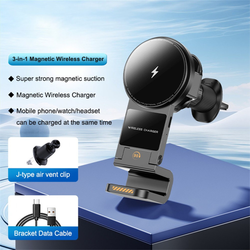 Transformez votre trajet avec ce support magnétique innovant qui charge simultanément votre téléphone, montre et écouteurs. Profitez d'une recharge rapide 15W et d'une installation sécurisée sur grille d'aération pour une conduite connectée.