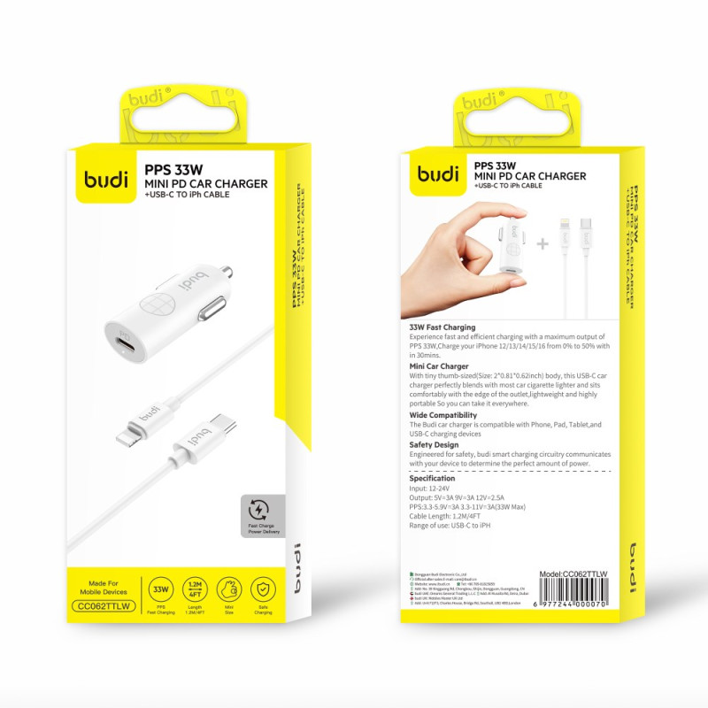 Chargez vos appareils en un éclair avec ce chargeur voiture compact 33W. Compatible avec iPhone et appareils USB-C, il inclut un câble de 1,2m pour une utilisation immédiate. Design mini élégant, charge rapide garantie.