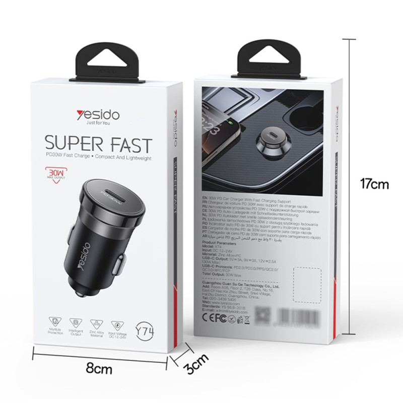 Découvrez la charge ultra-rapide 30W avec le YESIDO Y74. Compatible avec tous vos appareils grâce aux protocoles PD3.0, PPS et QC3.0. Design compact et élégant, parfait pour vos déplacements. Construction robuste pour une durabilité optimale. S'adapte à tous les véhicules avec entrée 12-24V.