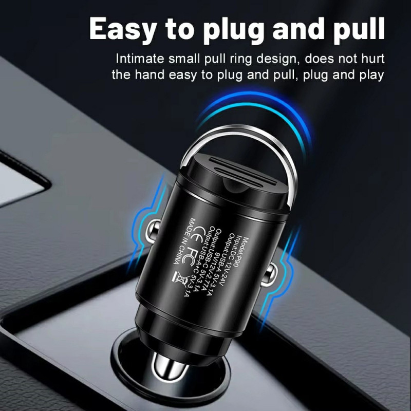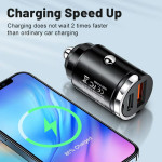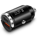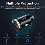 Chargeur voiture ultra-rapide 30W avec double port USB et Type-C PD. Profitez de la technologie QC3.0 pour une recharge express de vos appareils. Design compact avec anneau de retrait pratique et puce intelligente.