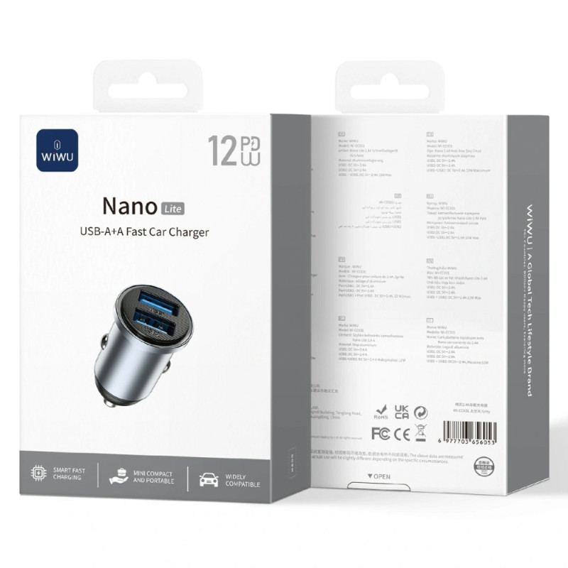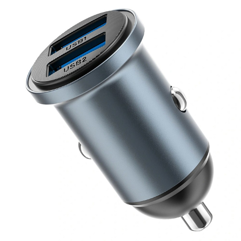 Chargeur de voiture compact avec double port USB QC3.0 offrant une charge rapide intelligente jusqu'à 12W. Design élégant et discret qui s'intègre parfaitement à votre tableau de bord. Compatible avec la plupart des appareils et protocoles de charge rapide.