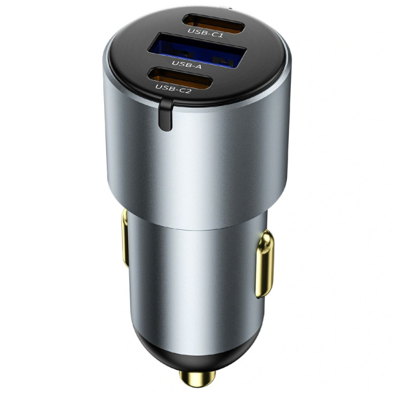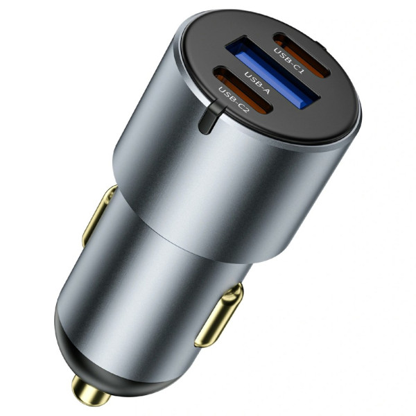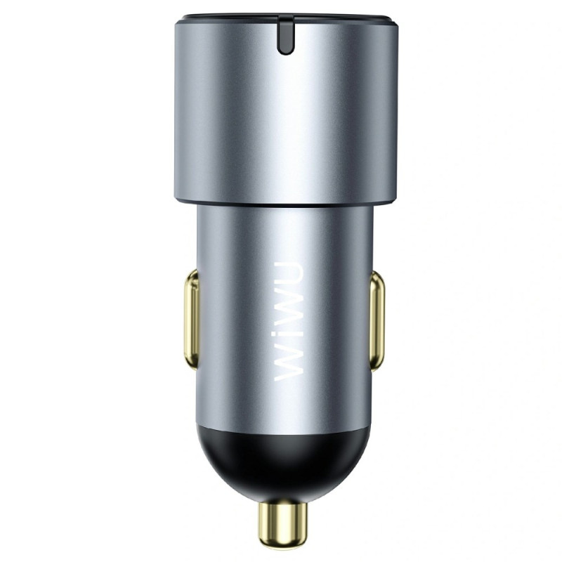 Chargeur voiture haute performance WIWU Nano Pro avec double port USB-C et port USB-A offrant une charge rapide jusqu'à 60W. Distribution intelligente de la puissance jusqu'à 30W par port pour charger simultanément plusieurs appareils...