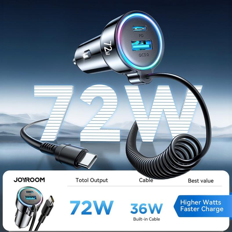 Chargeur Voiture 72W 3-en-1 Câble USB-C Rétractable JOYROOM