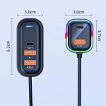 Transformez votre voiture en station de recharge polyvalente ! Ce chargeur multi-ports offre une charge rapide 30W PD et QC 3.0 pour tous vos appareils. Avec son câble d'extension de 1m et son éclairage d'ambiance élégant, rechargez simultanément jusqu'à 5 appareils depuis les sièges avant et arrière.