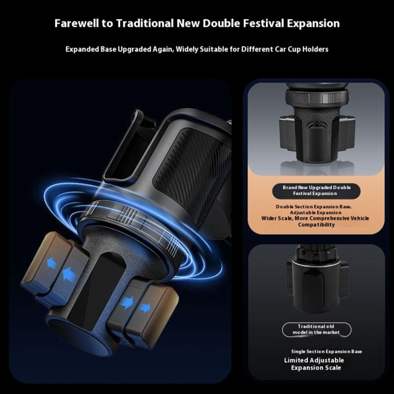 • Le porte-gobelet dispose d'une rotation à 360°, vous permettant d'ajuster votre téléphone et vos boissons à l'angle parfait pour un accès optimal conducteur et passager.