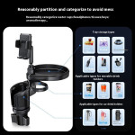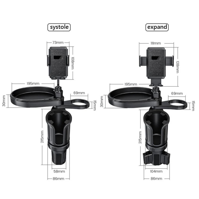 • Ce plateau extensible pour porte-gobelet automobile combine un support téléphone, un plateau de rangement, un porte-gobelet détachable et un compartiment à boissons, offrant une solution polyvalente pour tous vos déplacements.