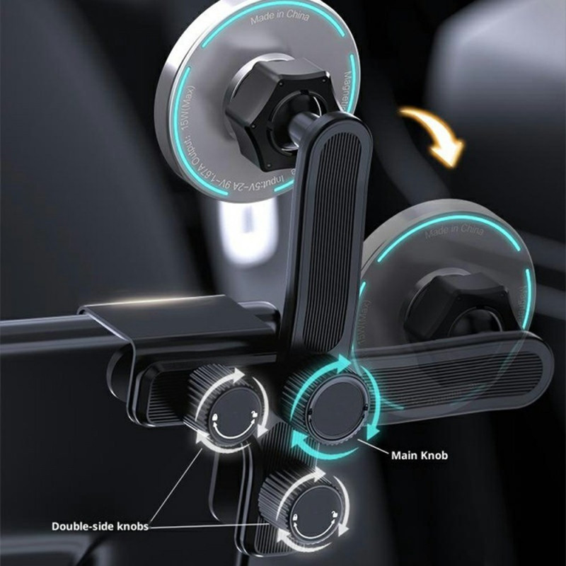 La stabilité thermique et l'efficacité de la charge magnétique sont désormais garanties, même sous les rayons directs du soleil. Conçu avec une base en métal résistant à la chaleur (jusqu'à 80°C), ce support élimine la déformation typique des plastiques. Il délivre une puissance sans fil rapide de 15W grâce à une tête en alliage de zinc. Les aimants de grade N52 assurent une force de maintien supérieure, même sur routes cahoteuses. L'angle est entièrement ajustable pour optimiser la ligne de mire, et le double système de molettes protège l'écran durant la fixation.