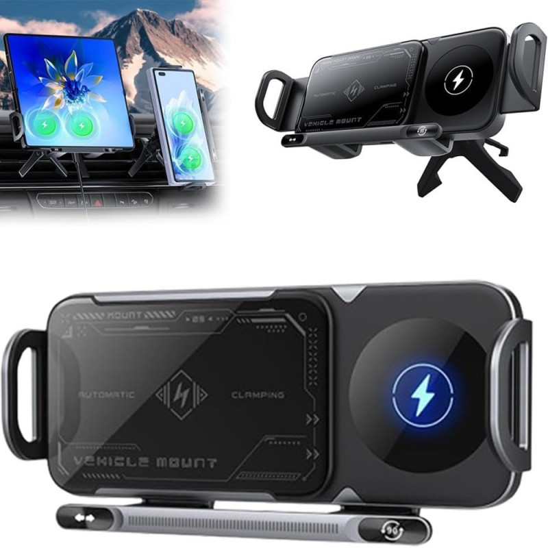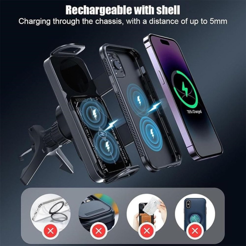 Ce support téléphone de voiture avec chargeur sans fil 15W combine confort, puissance et sécurité pour vos trajets quotidiens. Grâce à sa fonction de charge rapide, votre appareil retrouve toute son autonomie sans câble encombrant. Son système d’auto-rotation permet d’ajuster facilement le téléphone en mode portrait ou paysage pour une navigation optimale. La fixation sur grille d’aération assure une stabilité parfaite, même sur routes irrégulières. Conçu pour accueillir de nombreux téléphones et tablettes, il offre un maintien ferme et une expérience mains libres idéale pour conduire en toute sérénité.