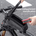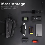 Concevoir une navigation fluide et un accès immédiat aux outils est l'objectif principal de cette sacoche à dégagement rapide. Fabriquée à partir d'un mélange d'EVA, de cuir et de polyester, cette unité offre une protection déperlante et une résistance à l'usure. Son film tactile en TPU permet l'utilisation du téléphone (jusqu'à 6.8 pouces) pour le GPS, et le pare-soleil intégré augmente la clarté sous forte luminosité. La sacoche dispose d'une capacité de 0.8L, suffisante pour une batterie externe et un kit de réparation. Le système de fixation rapide sur le tube supérieur assure une installation et un retrait instantanés.