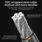 La fiabilité de la protection de vos biens contre le vol est assurée par la conception multi-matériaux de cet antivol. Il combine une tête de verrouillage en alliage de zinc moulée avec précision avec un câble interne en acier à haute résistance, offrant une structure solide. L'enveloppe extérieure en PVC composite protège efficacement contre la pluie et la corrosion, tandis que la coque en plastique ABS résiste aux chocs. Son poids plume de 313g le rend facile à transporter. Avec une longueur totale de 115cm, il est idéal pour sécuriser les vélos, les trottinettes électriques ou les portes en verre à des objets fixes.