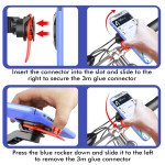 La sécurité du dispositif pendant le trajet est garantie par le système de verrouillage intégré, même sur les terrains les plus extrêmes. Ce support HL-143A en alliage d'aluminium et ABS est doté d'un système Super Lock assurant une fixation stable et antichoc. Le téléphone (4.7 à 6.7 pouces) peut être connecté ou détaché en quelques secondes et d'une seule main, optimisant la réactivité du cycliste. La rotule rotative à 360 degrés permet un ajustement instantané de l'angle de vue. Une fois installé, il offre un accès facile à la navigation, aux applications et aux messages.