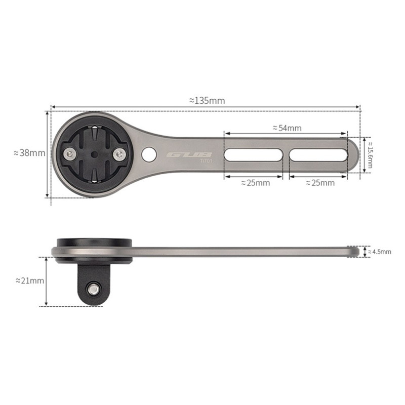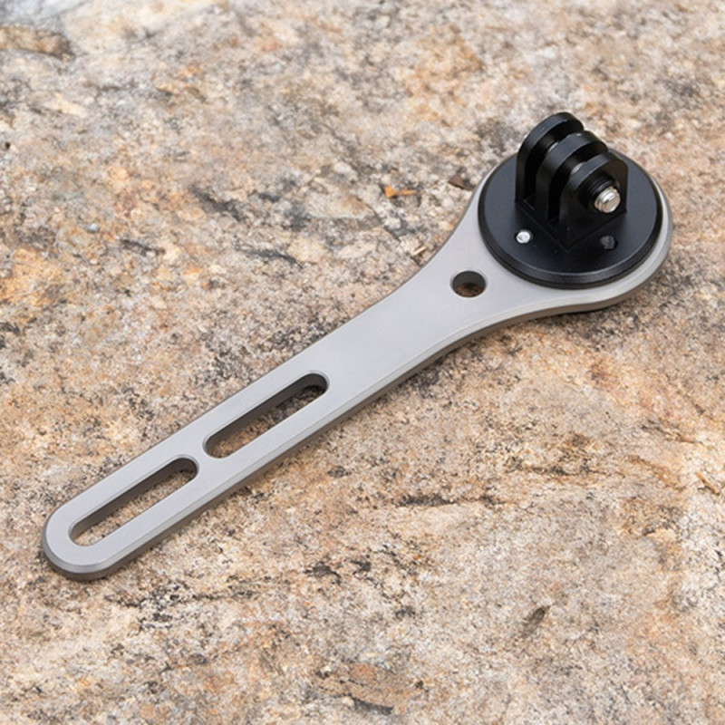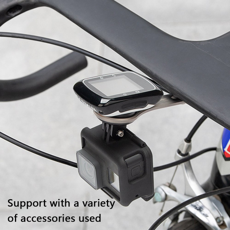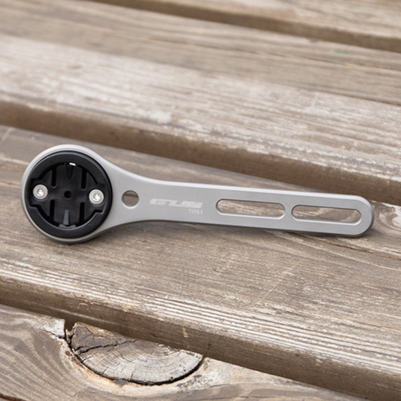 Réservé aux cintres monoblocs, l'alliage de titane de ce support central assure une base rigide pour l'enregistrement de données et de vidéos. Fabriqué en alliage d'aluminium et doté d'un cadre en titane, il offre une résistance exceptionnelle sans alourdir le poste de pilotage (52g). La position centrale libère l'espace du guidon tout en optimisant l'angle de vue des données cyclistes. Le support est compatible avec la série complète des ordinateurs Garmin, ainsi que Wahoo et Bryton. Une fixation inférieure permet l'expansion vers une caméra d'action standard.