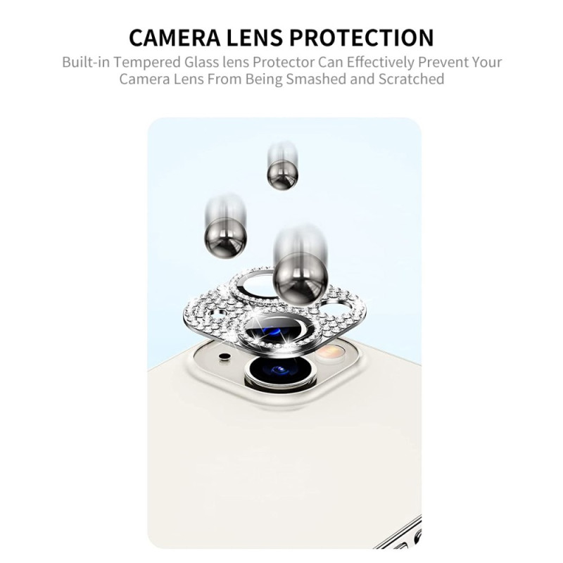Le protecteur de lentille ENKAY HAT PRINCE est conçu pour offrir une protection optimale à votre iPhone 13. Fabriqué en verre trempé premium avec une dureté 9H, il résiste efficacement aux rayures et aux chocs. Sa bordure en alliage d'aluminium, ornée de strass brillants, apporte une touche de style tout en protégeant votre appareil photo. Avec une transmittance lumineuse de 99,99%, il préserve la qualité de vos photos.