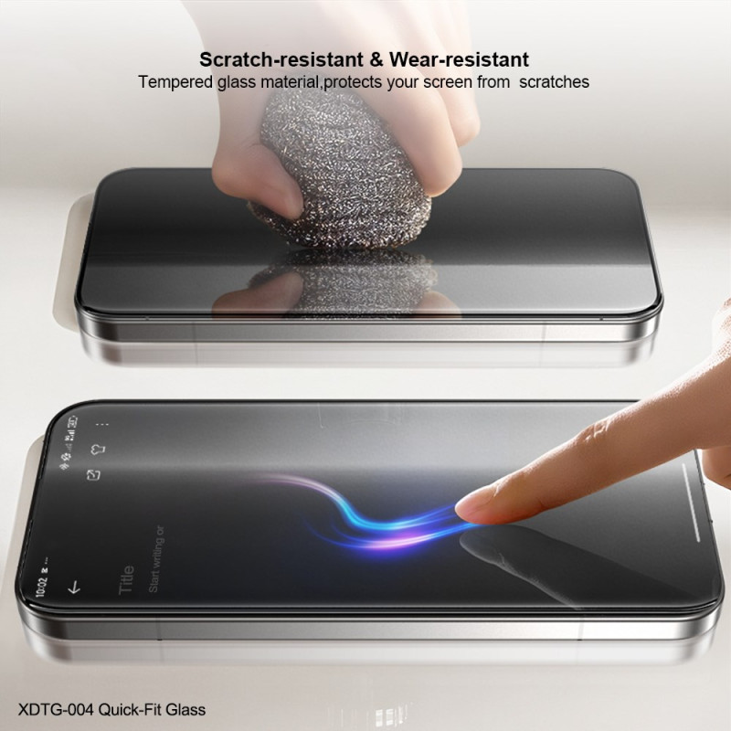 • Installation express : Tirez, pressez, glissez - Pose sans poussière ni bulles grâce au cadre spécialisé inclus, garantissant un ajustement parfait en trois étapes simples.