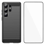 Coque Samsung Galaxy S26 Ultra Fibre Carbone Brossée avec Protecteur Écran