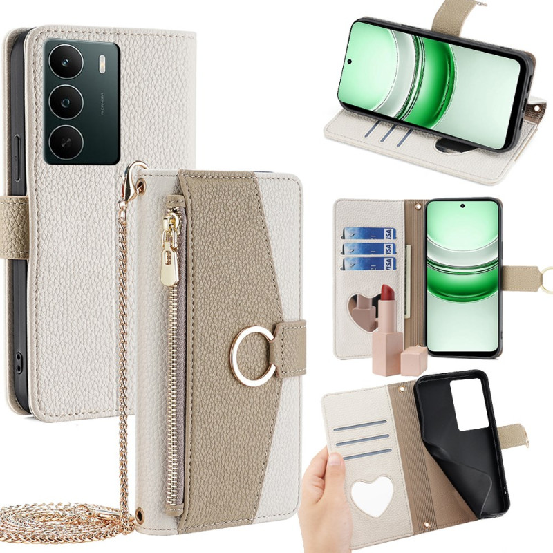 Découvrez notre housse portefeuille élégante et multifonctionnelle pour Realme C71 4G. Alliant protection, praticité et style, elle offre un espace de rangement pour vos cartes et billets, un miroir intégré, une fonction support et une chaîne amovible pour un port en bandoulière. Idéale pour les utilisateurs actifs cherchant une solution tout-en-un.
