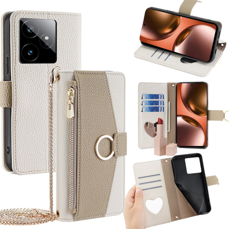 Protégez votre Realme GT 7 5G avec style grâce à cet étui portefeuille multifonctionnel. Doté d'un miroir intégré, d'une bandoulière chaîne élégante et de multiples compartiments de rangement, il allie protection premium et praticité au quotidien.