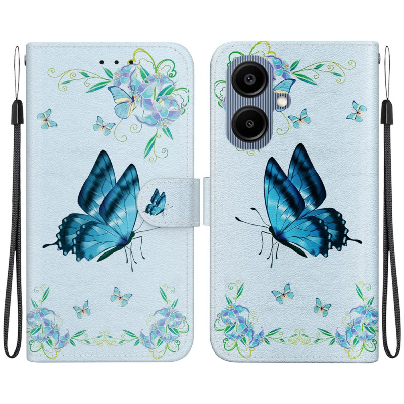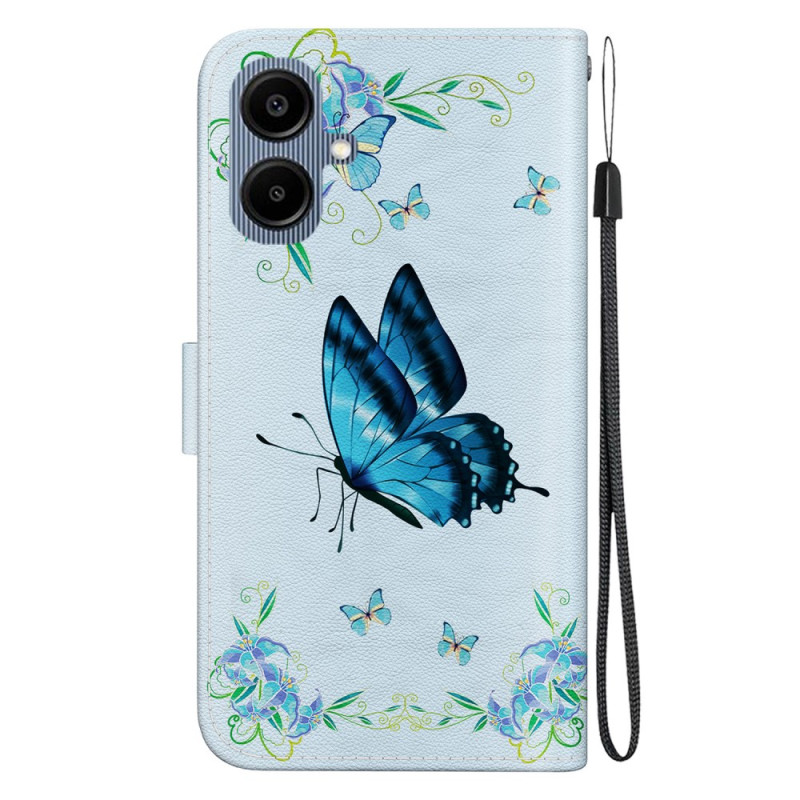 Découvrez notre étui portefeuille élégant et pratique pour votre Samsung Galaxy A07 5G / 4G / A06. Fabriqué en cuir PU de haute qualité avec un motif papillon bleu et fleurs, cet étui offre une protection antichoc, une fonction support, des emplacements pour cartes et une sangle pratique. Profitez d'un accès facile à toutes les fonctionnalités de votre téléphone grâce aux découpes précises.