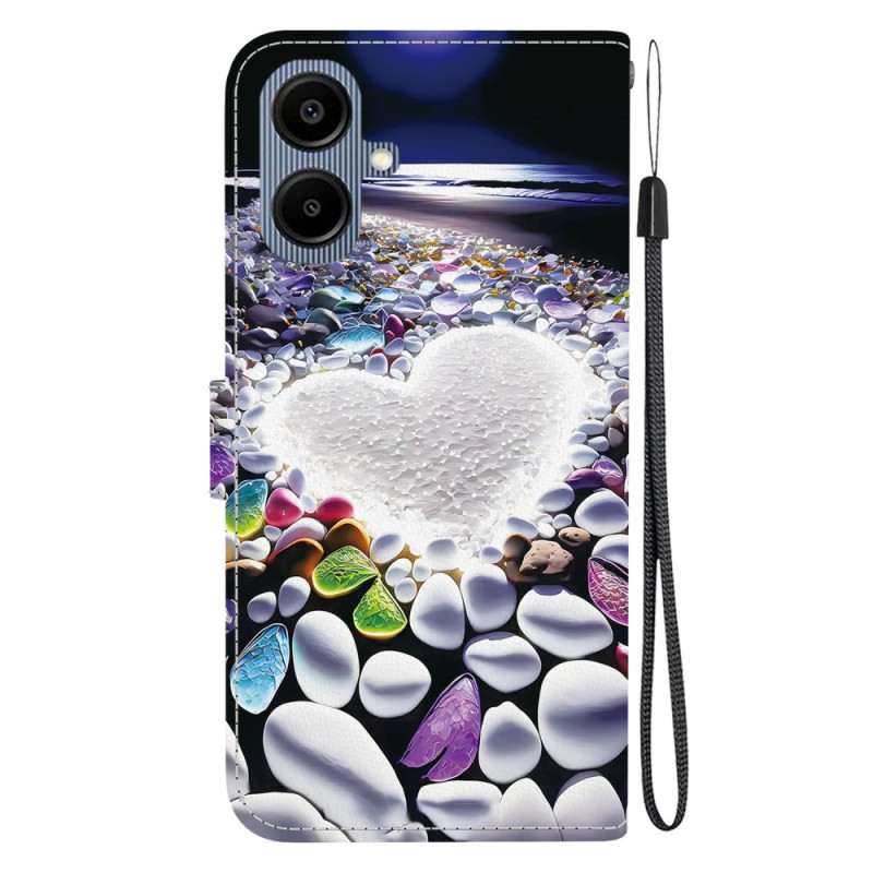 Découvrez notre élégant étui portefeuille pour Samsung Galaxy A07 5G / 4G / A06. Fabriqué en cuir PU de qualité avec un motif cœur imprimé, il offre une protection complète et un style unique. Profitez de la fonction support, des emplacements pour cartes et d'une lanière détachable pour une utilisation pratique au quotidien.