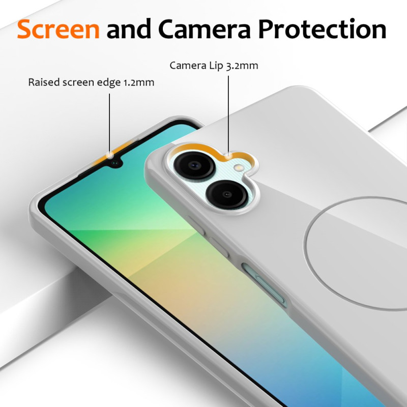 Découvrez notre coque magnétique de haute qualité pour Samsung Galaxy A07 5G / 4G. Compatible MagSafe, elle offre une protection optimale avec ses bords surélevés pour l'écran et la caméra. Fabriquée en TPU premium, elle est douce, durable et résistante aux taches d'eau. Son anneau magnétique intégré permet une fixation facile sur les chargeurs sans fil et supports magnétiques...