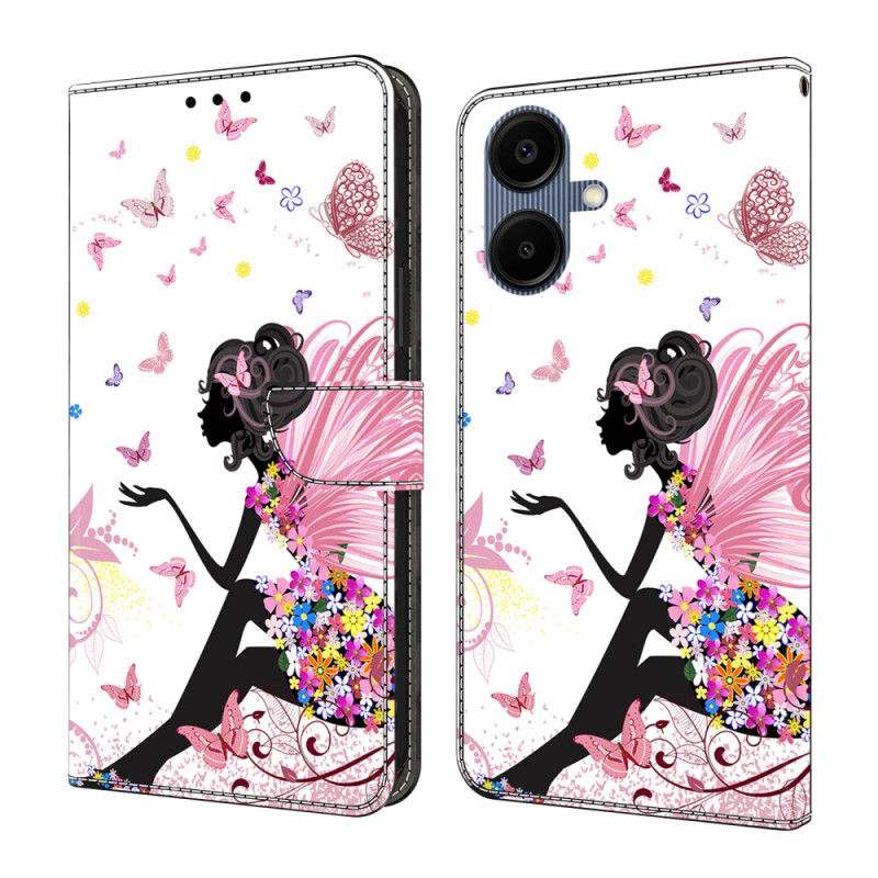 Étui portefeuille élégant avec motif femme papillon pour Samsung Galaxy A07 5G / 4G. Design à rabat avec support pliable intégré, 2 emplacements pour cartes et compartiment pour espèces. Fermeture magnétique sécurisée pour une protection complète.