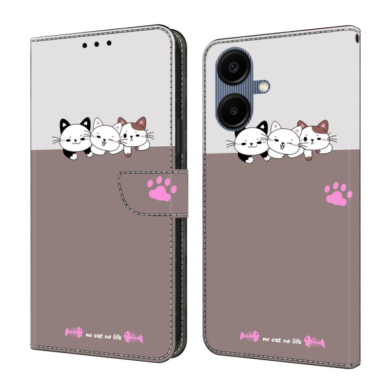 Protégez votre Samsung Galaxy A07 5G / 4G avec style grâce à cet étui portefeuille à rabat élégant. Doté d'un support pliable pratique, de 2 fentes pour cartes et d'une fermeture magnétique sécurisée, il allie fonctionnalité et design tendance avec un charmant motif de chats.