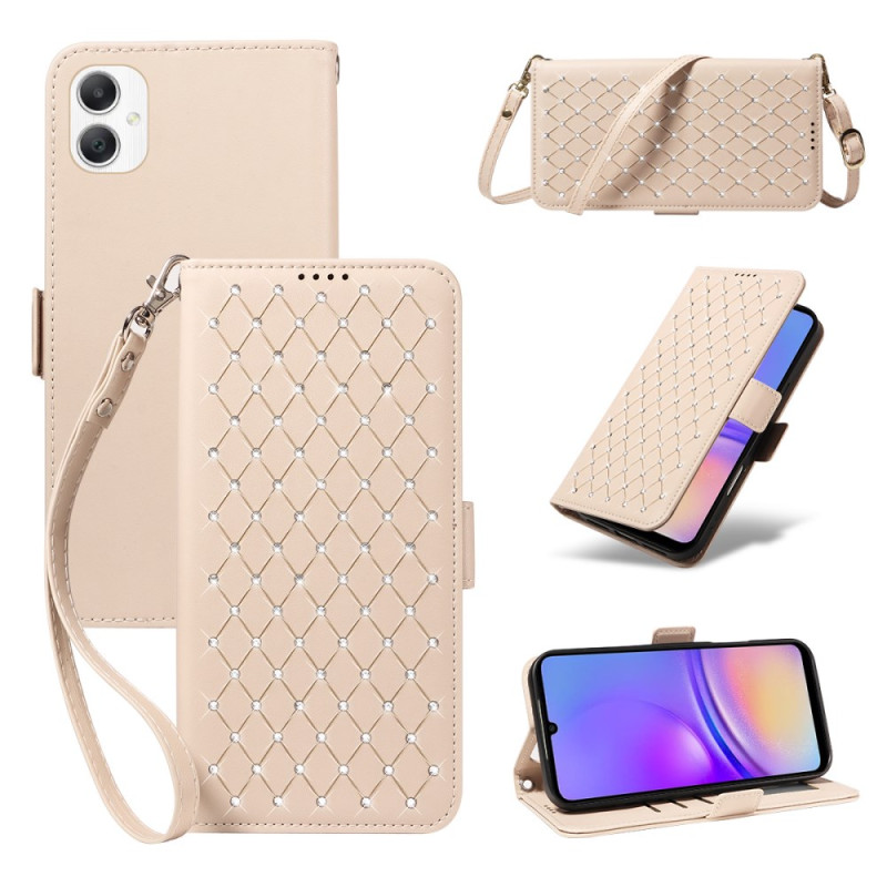 Découvrez cet élégant étui portefeuille à rabat orné de strass et d'un motif losange sophistiqué. Avec ses 3 emplacements pour cartes, sa protection RFID et son support intégré, il allie style et praticité au quotidien.