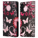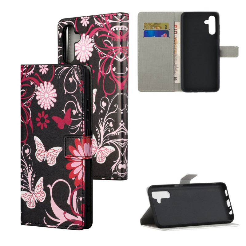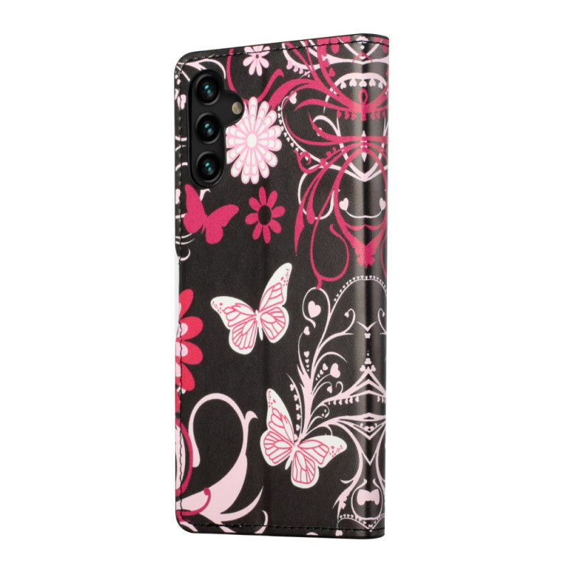 Une protection conçue pour le Samsung Galaxy A13 5G / A04s au design empli de papillons et de fleurs.