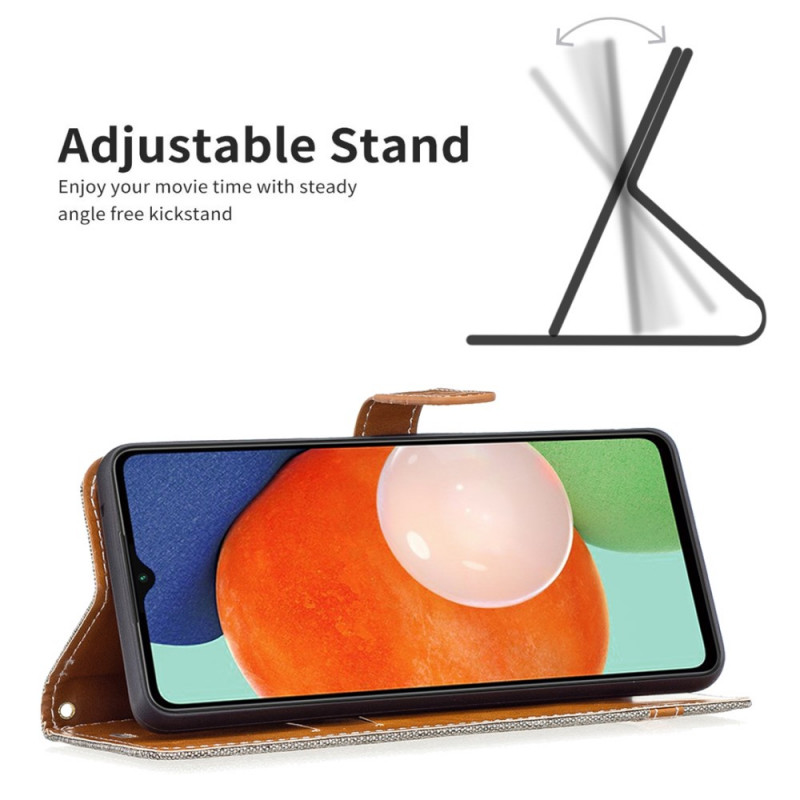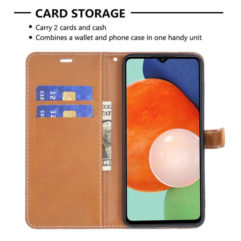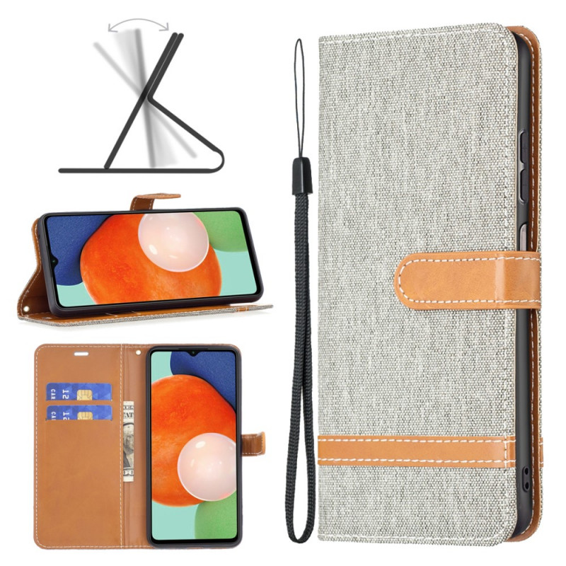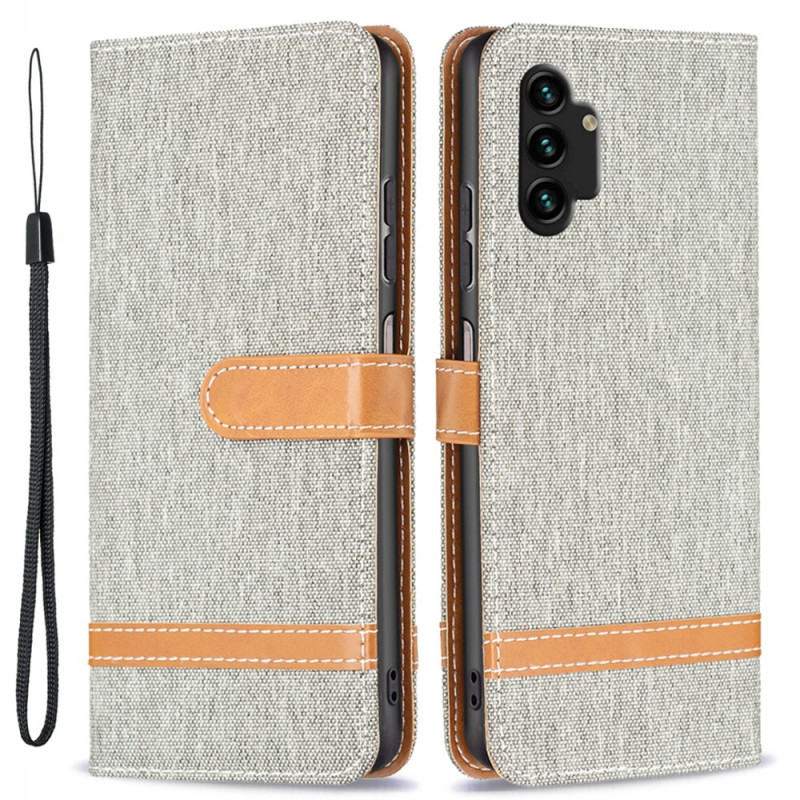 Une housse en simili cuir recouvert de tissu, qui vient avec une lanière, pour protéger l'ensemble de votre Samsung Galaxy A13 avec élégance.
