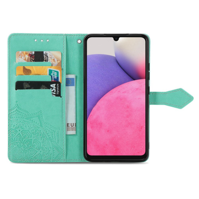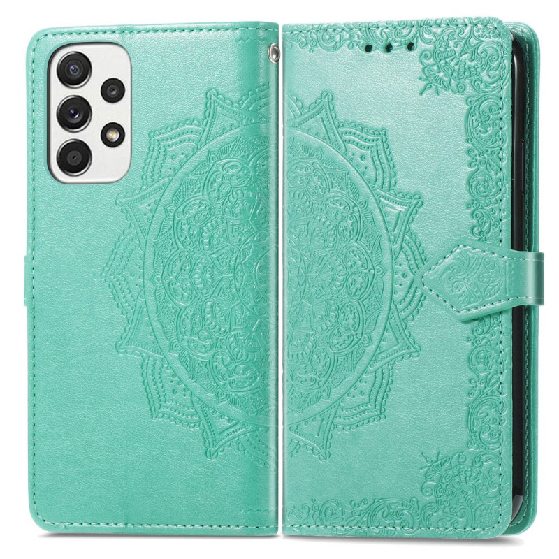 Une superbe housse pour le Samsung Galaxy A13, décorée d'un mandala moyen âge, qui le sécurise entièrement tout en servant de portefeuille.