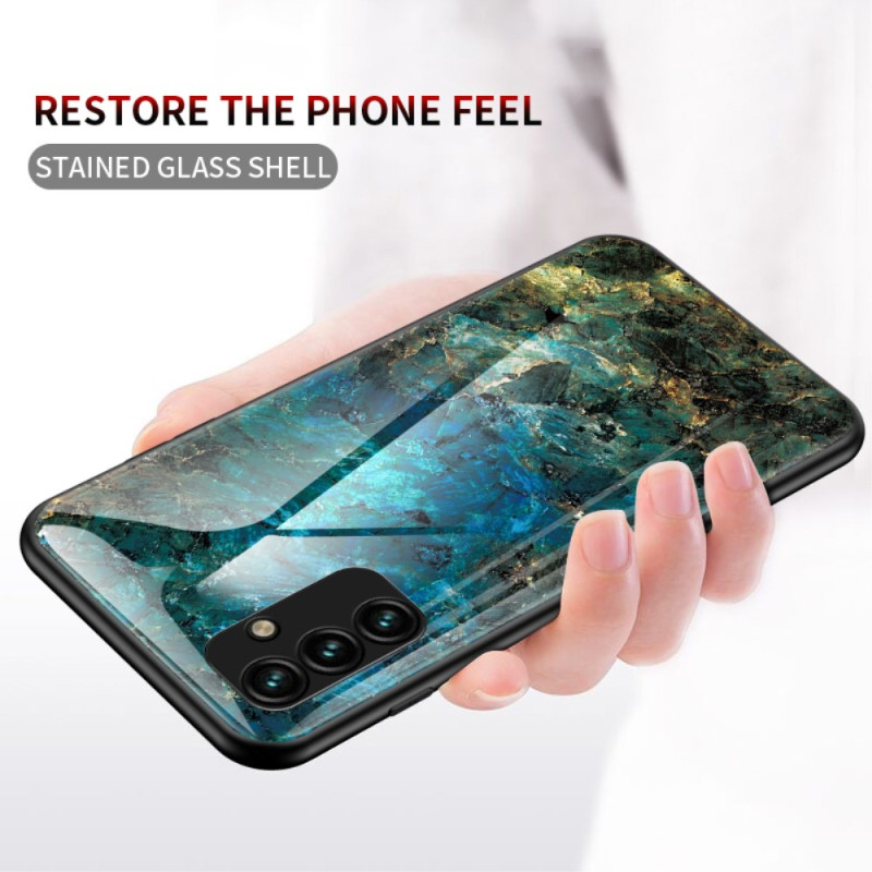 Le Samsung Galaxy A14 5G / A14 est magnifiquement protégé avec cette coque en verre trempé au design marbré.