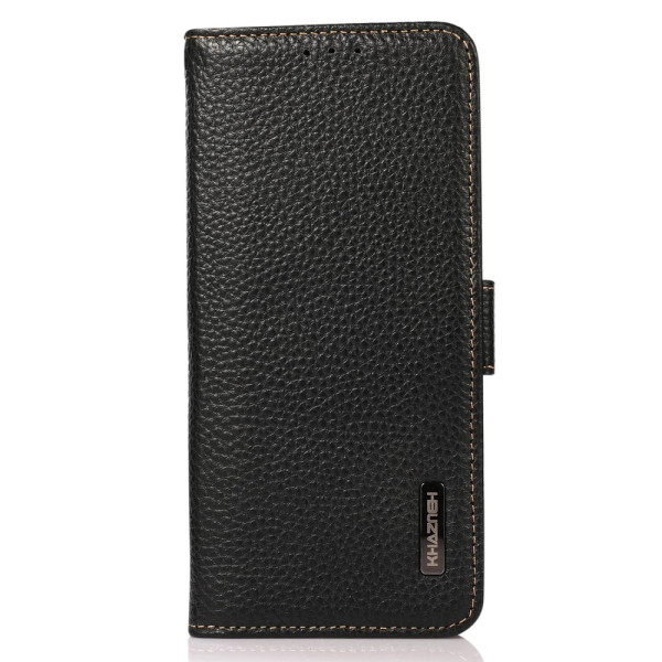 Dotée d'une texture litchi raffinée, elle offre une protection RFID, des emplacements pour cartes et une fonction support.