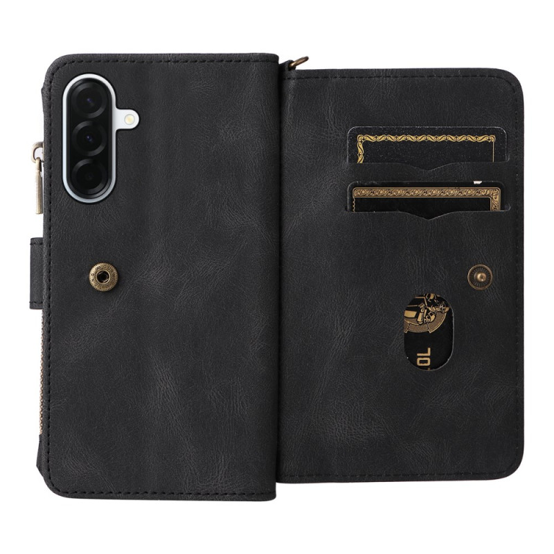Étui portefeuille multifonctionnel pour Samsung Galaxy A37 5G en cuir PU premium. Dispose de 15 emplacements pour cartes, une poche zippée sécurisée, un support ajustable et une dragonne détachable. Protection intégrale contre les rayures et les chocs.