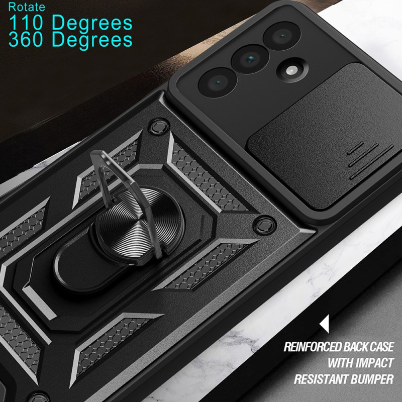 Découvrez notre coque innovante pour Samsung Galaxy A56 5G. Dotée d'une protection coulissante pour la caméra, d'un support rotatif et d'une résistance militaire, elle offre une protection optimale tout en restant élégante.